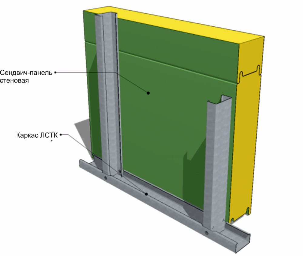 Крепят материал на каркасе, используя саморезы по металлу или древесине (зависит от материала стоек). При этом от края сэндвич-панелей отступают не менее 3 см
