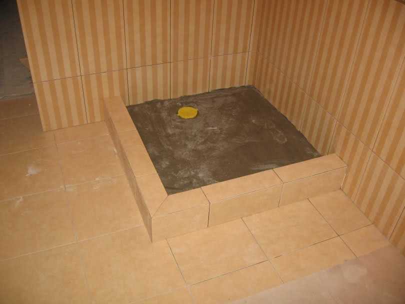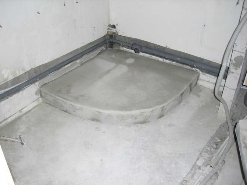 Очень важно уделить внимание гидроизоляции слива. Сливную конструкцию нужно уложить в стяжку пола, где и делается углубление. Все остальное пространство необходимо залить бетонной смесью