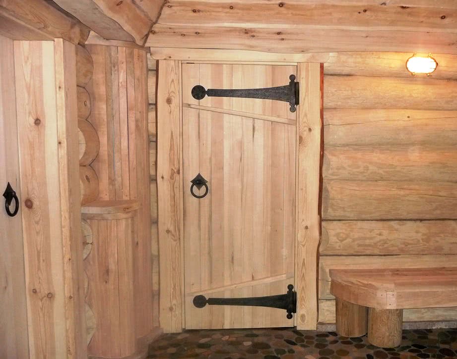 Для парилки дверь желательно изготавливать из липы, ольхи или осины. Можно использовать и хвойные породы дерева, но тогда вам нужно будет обработать их поверхность, чтобы не выделялась смола.