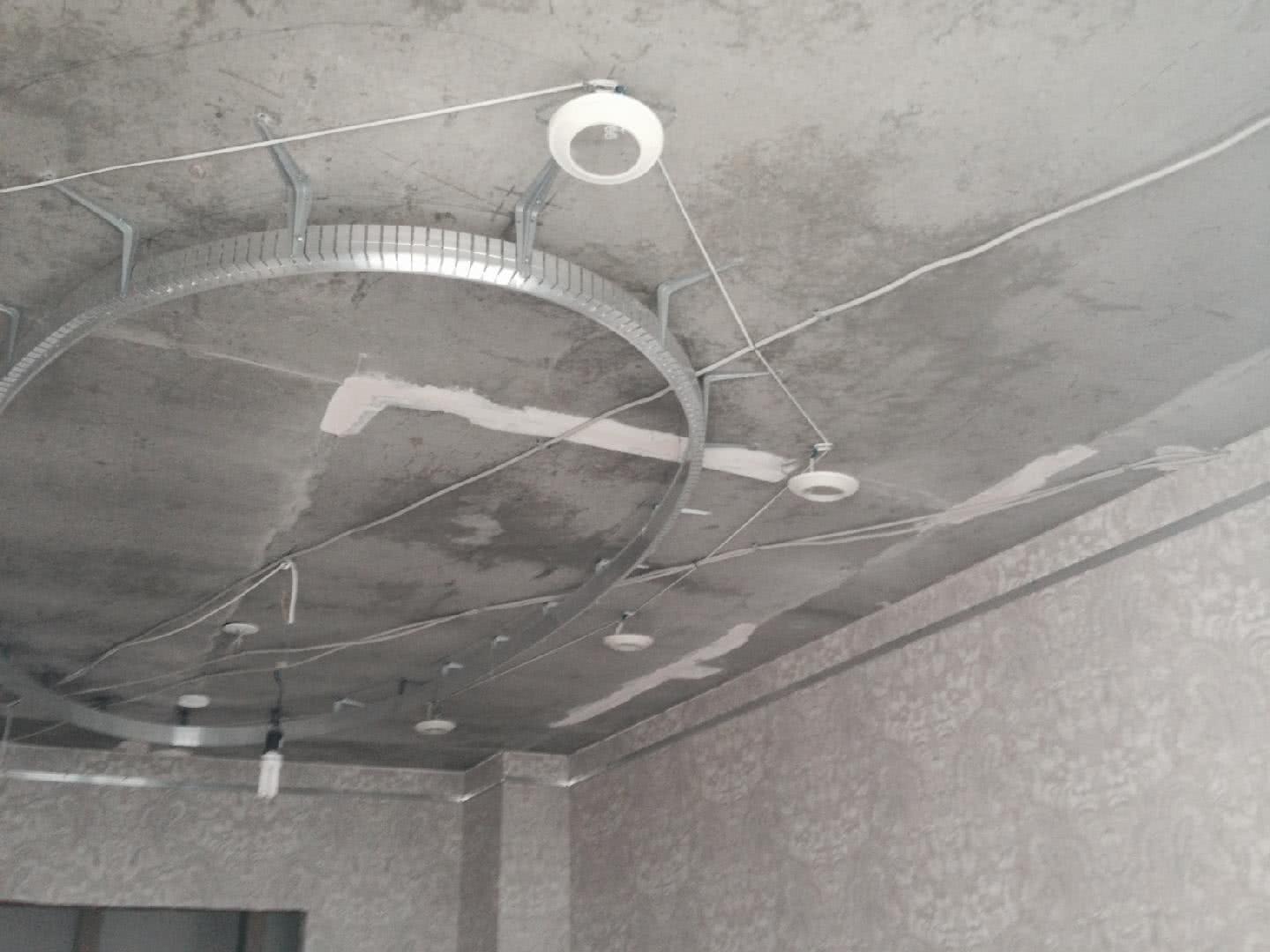 - Попутно маскируется вся электропроводка и точки установки светильников.