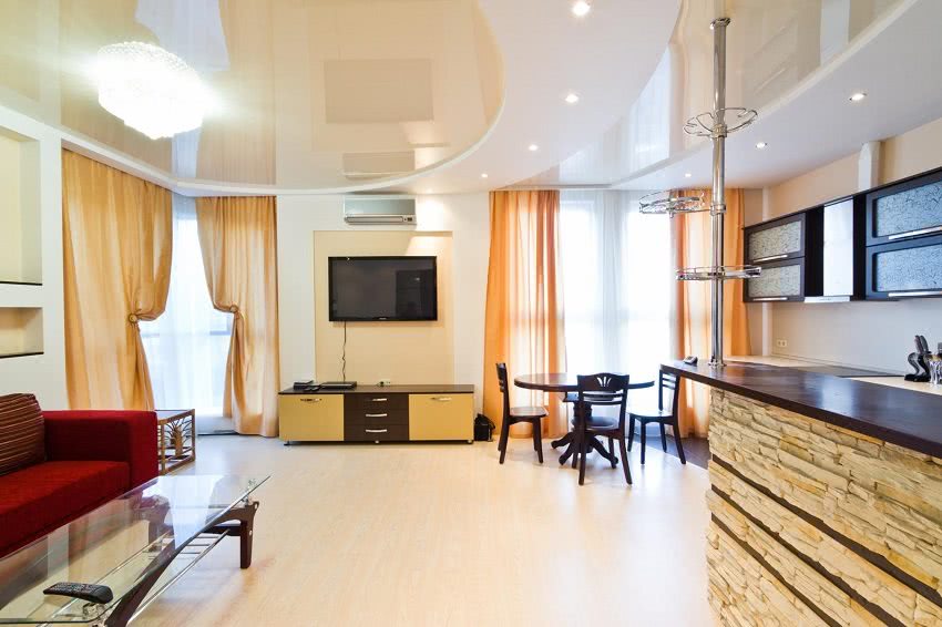 Варианты двухуровневого потолка из гипсокартона и натяжной пленки