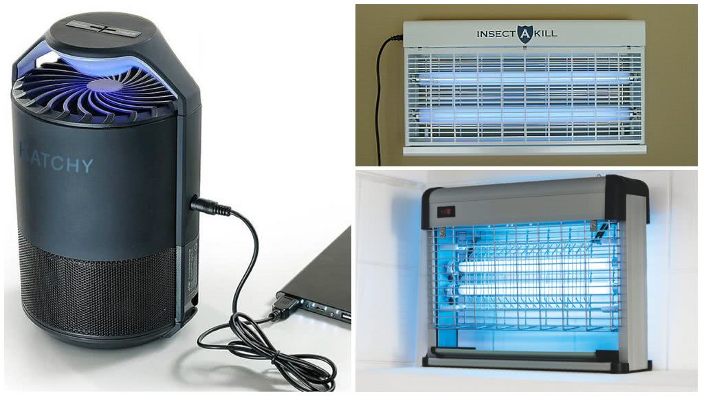 - Уничтожители с ультрафиолетовыми лампами. Они привлекают мух, комаров, мошек, ультрафиолетовым светом. Приближаясь к нему насекомые прикасаются к металлической решетке, которая находится под напряжением и погибают от удара током. Установленные в них лампы полностью безопасны, не наносят вред здоровью людей, поскольку их действие направлено исключительно на истребление мух, комаров.
