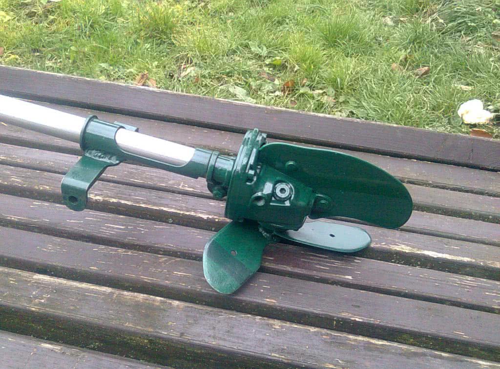 Минимально изменив конструкцию триммера можно устроить отличный тяговый агрегат для лодки любой конструкции. Двигатель и трансмиссия в таком приборе уже есть, достаточно изготовить крепление для лодки, а вместо бобины с леской или диска установить гребной винт.