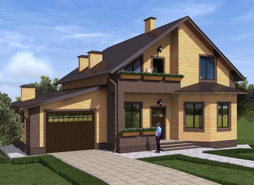 Коттедж с эркером и гаражом Источник repair-kits.ru