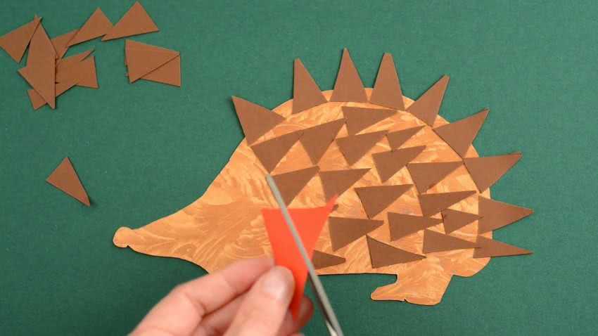 1. Вырежьте из фетра мордочку ежика — ее форма напоминает треугольник с одной закругленной макушкой.