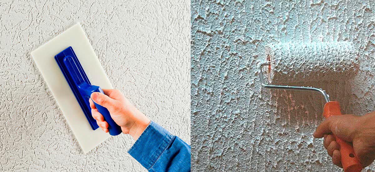 Если после прокатки инструмента на каком-либо участке получился более рельефный рисунок, излишки материала убирают шпателем. Его перенаправляют в область с менее выраженной фактурой. Без опыта сложно сразу добиться однородного рельефа, поэтому стоит предварительно потренироваться на поверхности с небольшой площадью.
