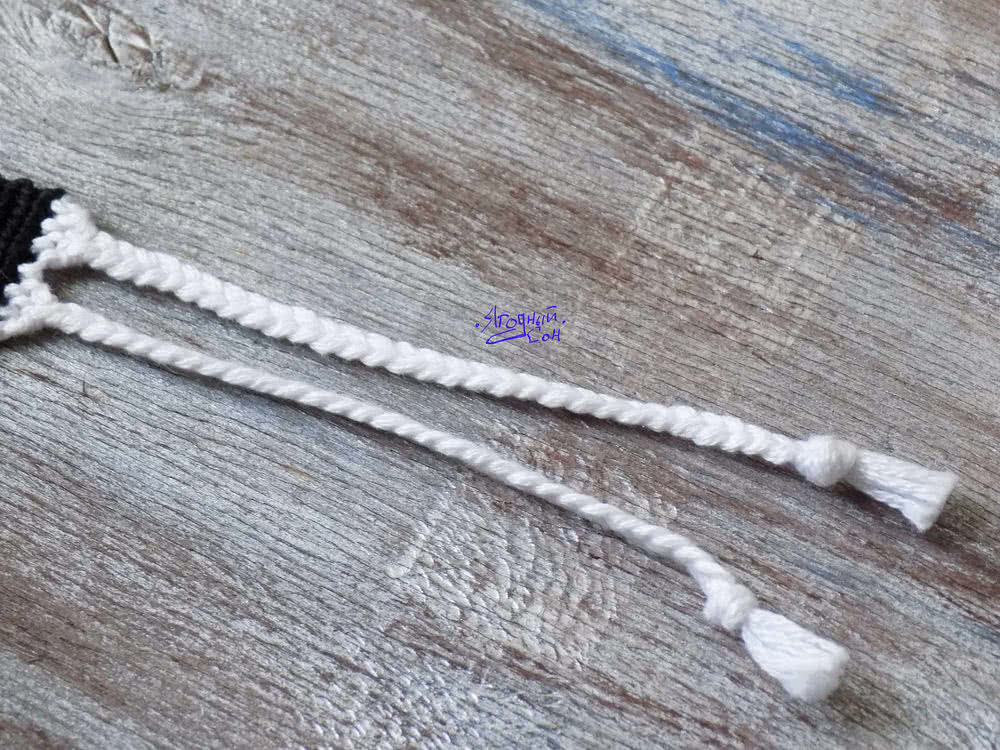 По внешнему виду эти завязки напоминают миниатюрный канат. Плести их очень легко, а результат выглядит очень эстетично благодаря сочетанию разноцветных ниток.