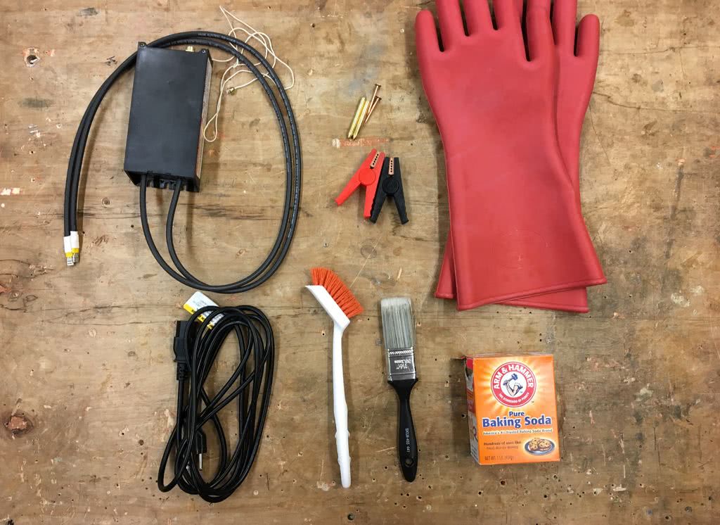 Вам понадобятся бумажные полотенца, щетка с жесткой щетиной и немного наждачной бумаги (между 600-1500 зернистостью).