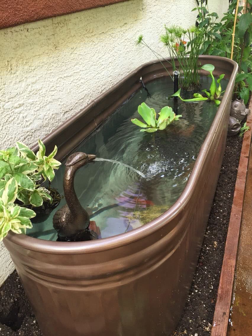 Помимо насоса, приобретаемого в магазине, остальные детали можно собрать из подручных материалов. Потребуется либо ненужная ёмкость, либо пруд. Для последнего в список покупок добавляют специальную гидроотталкивающую плёнку — лайнер. Для удержания плёнки на месте её края прижимаются кирпичами или камнями.