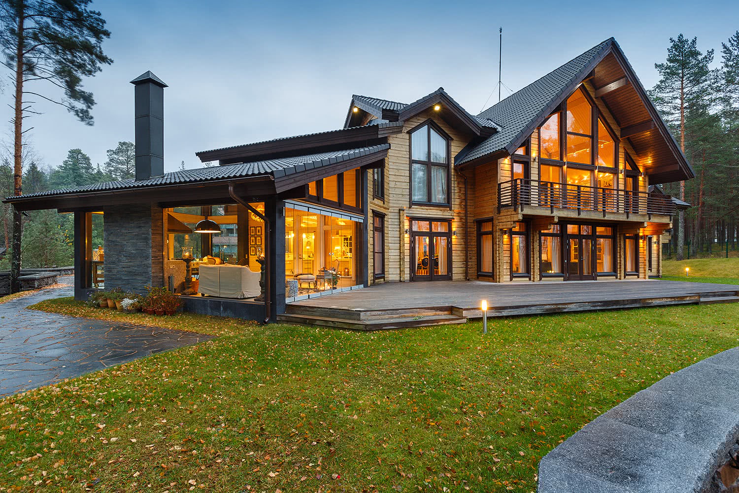 Дерево. Этот природный материал отличается прекрасными теплоизоляционными свойствами, экологичностью и способностью вписываться во многие стили оформления загородного жилища. Однако выбрав древесину, нужно быть готовым к постоянному уходу за ней. Периодически вам придется обрабатывать материал от грибка, плесени и насекомых.