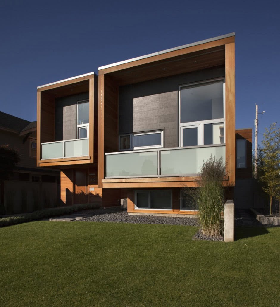 Все проекты, включенные в группу маленьких домов, подходят для самостоятельной реализации. Индивидуальные планы подходят для использования в плотно застроенных районах. Благодаря тому, что одна из стен лишена окон, она может быть ближе пристроена или даже прикреплена к существующему зданию. С передней стороны, кроме входа и гаража, может быть установлена котельная, иногда прачечная. Жилая комната располагается на противоположной стороне здания почти всегда, когда план дома предполагает гараж на уровне первого этажа. В дизайне дома современного малого проекта, в котором планируется строительство гаража под зданием, еще проще создать солнечную гостиную. Это особенно выгодно в случае инвестиций на узких участках при въезде с юга.