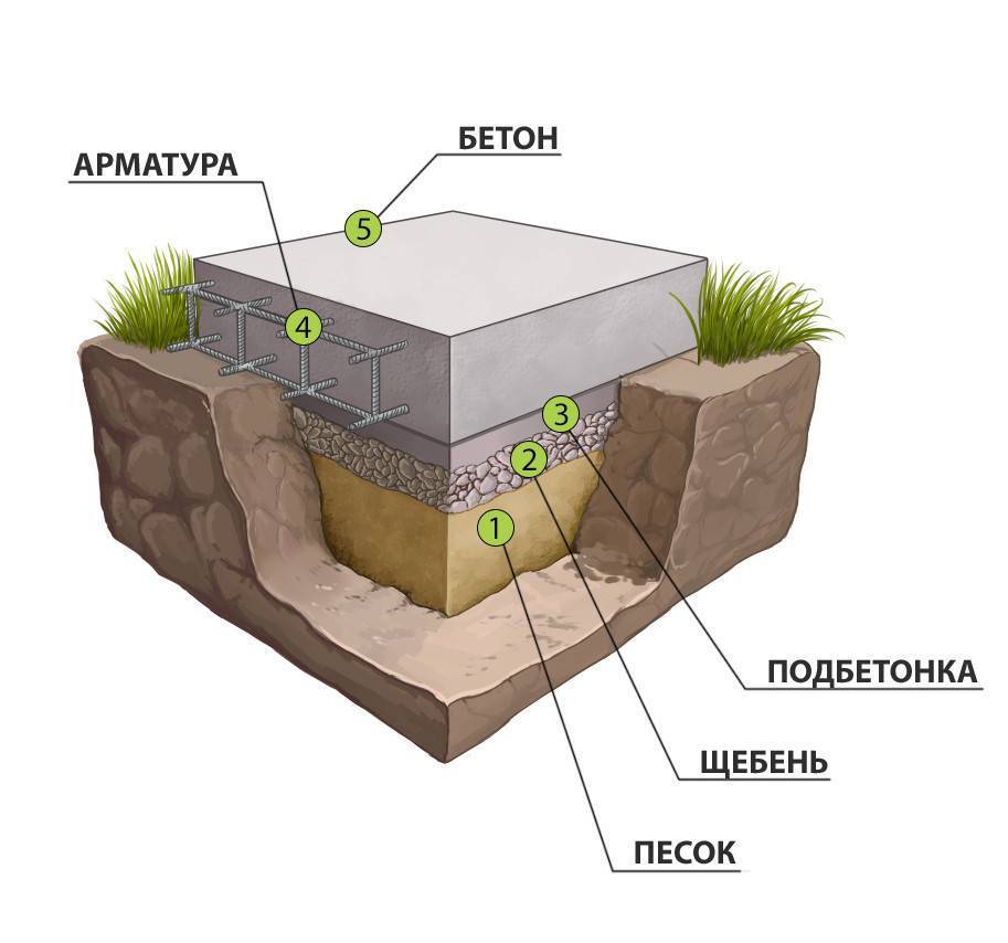 - если почва полу твёрдая с наличием содержания глины, допустимо залить любое основание;