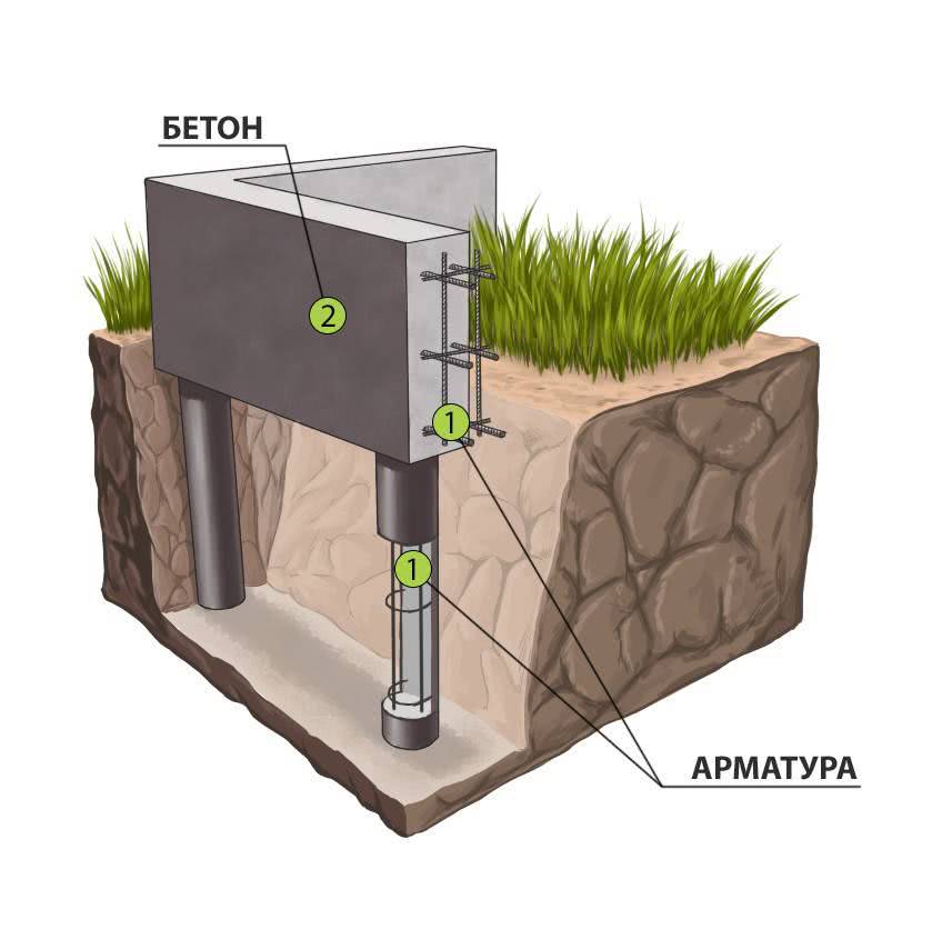 Уширенная подошва столба позволяет снизить нагрузку на грунт при слабых грунтах