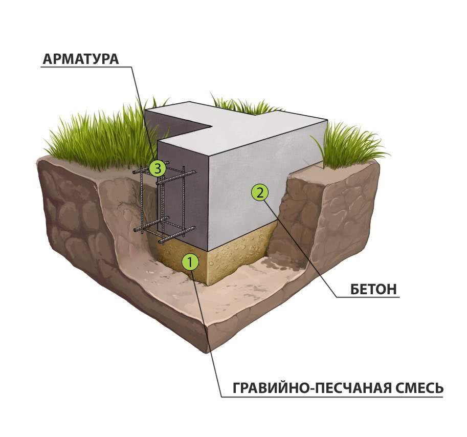 Ленточный фундамент представляет собой железобетонную армированную ленту, которая устраивается по периметру дома и под всеми несущими стенами.Чаще всего такой фундамент используется в грунтах с умеренными силами пучения и устанавливается выше глубины промерзания.