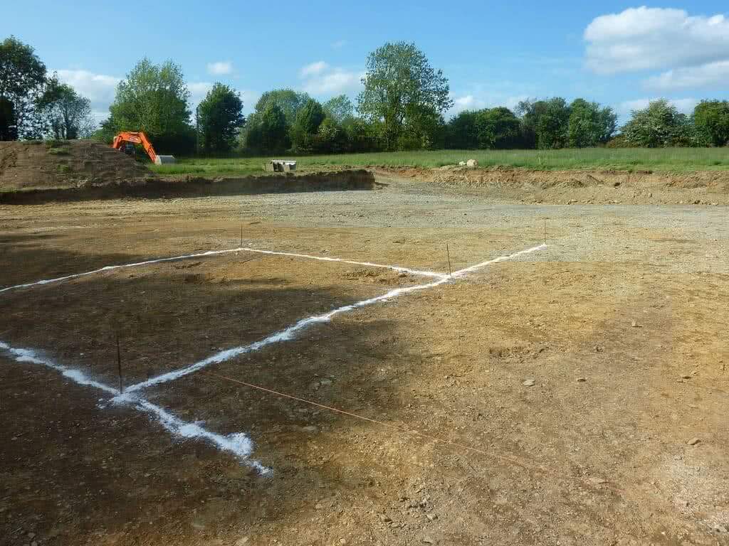 Данный этап заключается в удалении плодородного слоя земли по периметру предположительной стройки и в проведении разметки.