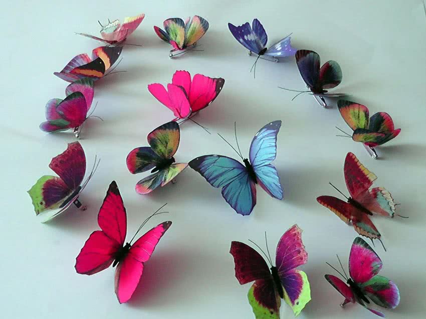 Желательно использовать двустороннюю бумагу, поскольку белая сторона обычной бумаги может немного испортить внешний вид как бабочек, так и комнаты в целом. Трафареты бабочек, по которым нужно изготавливать бабочек можно легко найти в интернете.