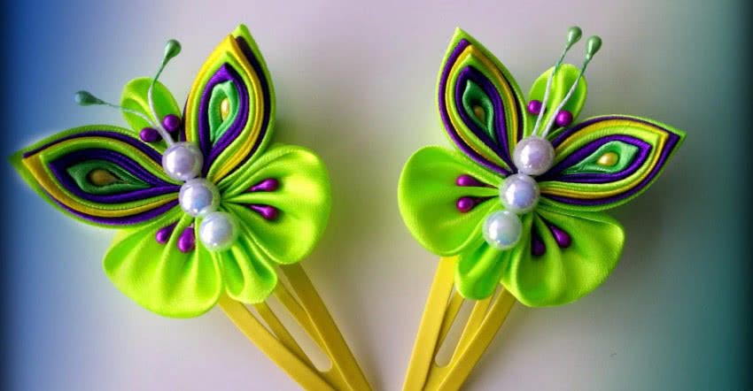 И наша бабочка готова! При желании, вы можете сделать детали из разных цветов. При этом не менее интересно будет выглядеть, если верхний бантик будет немного меньшего размера.