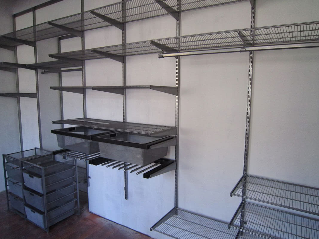 Еще популярный вариант — кладовка. В этом случае все вообще просто. Убираете все лишнее, меняете двери и устанавливаете соответствующее наполнение: стойки, стеллажи, корзины, полки.