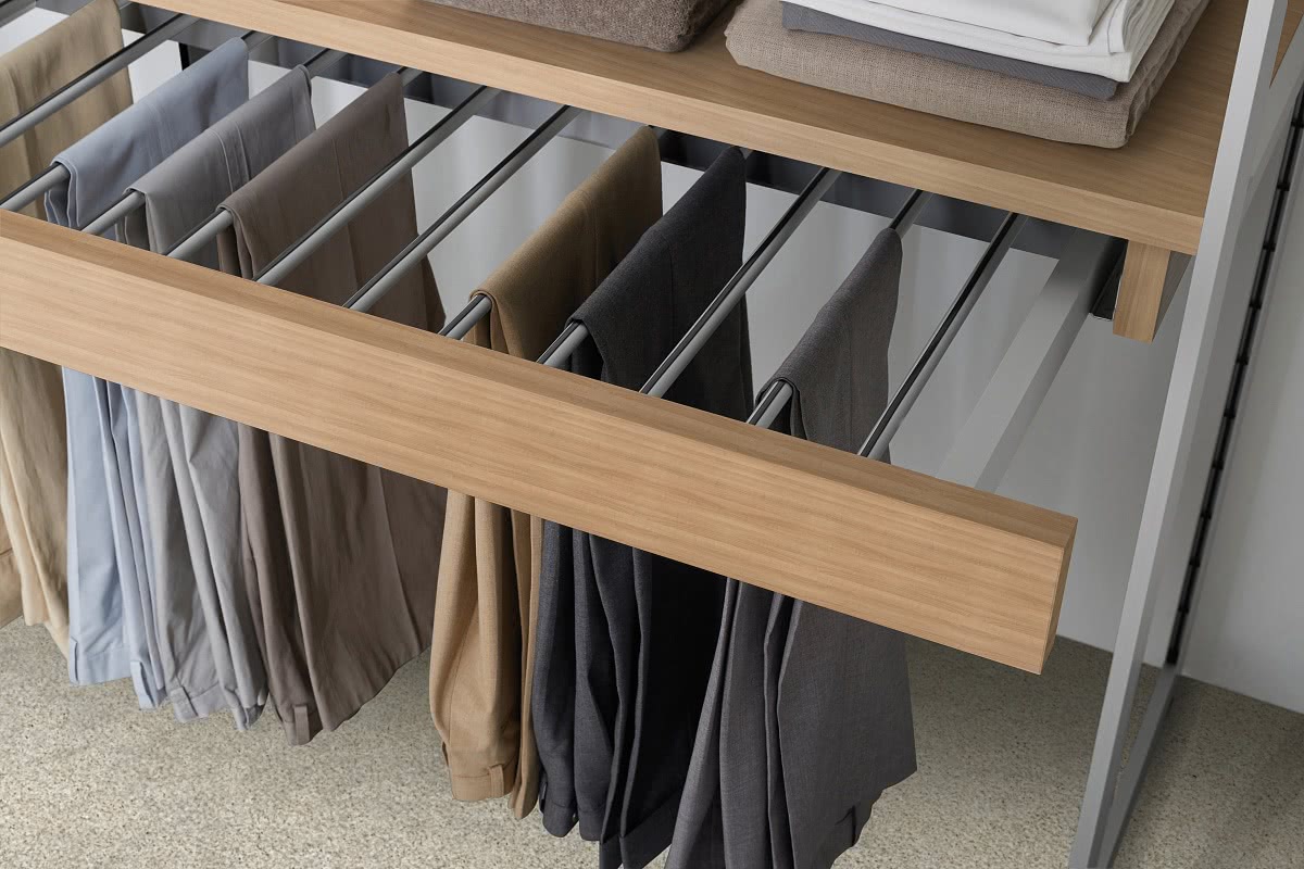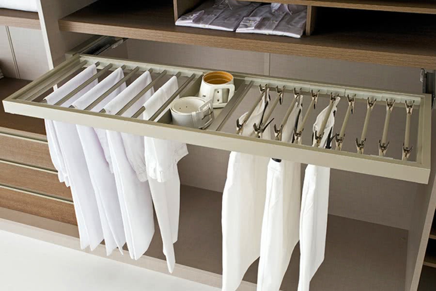 Не обойтись без вешалок для брюк, которые могут быть как одинарными, так и двойными. Примерная высота – не менее 60 см.