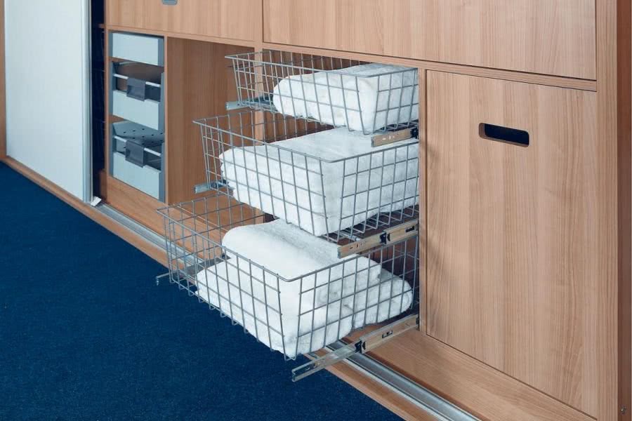 | Белье, постельные принадлежности | Выдвижные ящики, корзины, полки |