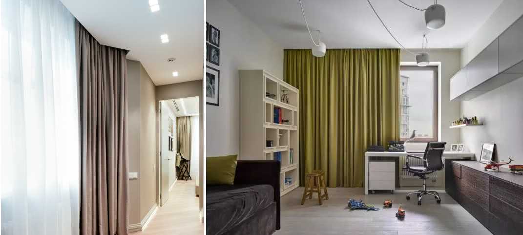 Так же стоит отметить тот факт, что плотные и тяжелые шторы массивны и в сдвинутом к стене виде могут занимать много места. Поэтому выбирая вариант с двумя желобами для крючков, вы можете столкнуться с проблемой, когда занавеска при ее движении будет задевать тюль.