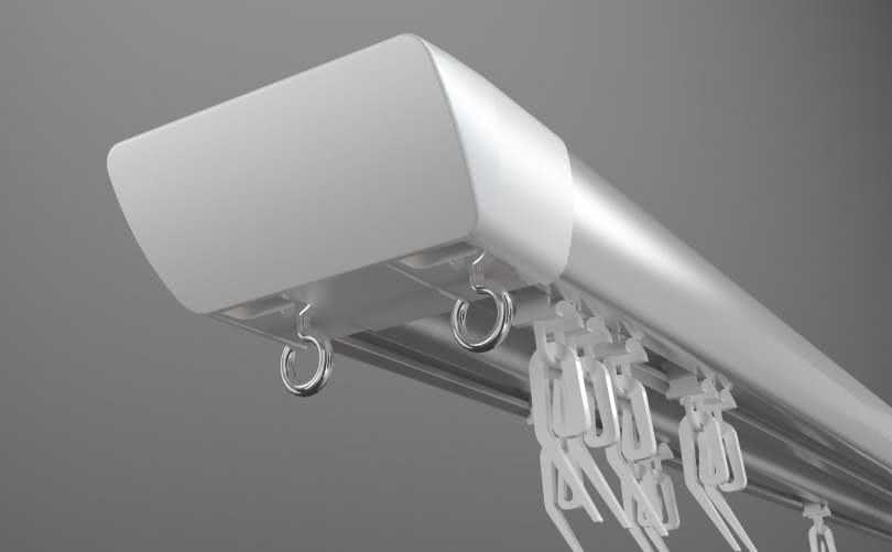 Очень интересная модель, выполненная из алюминия. Она рассчитана на повышенные нагрузки и прекрасно выдерживает ткани любой плотности. За счёт надёжности конструкции и прочности материала карниз снискал любовь дизайнеров.
