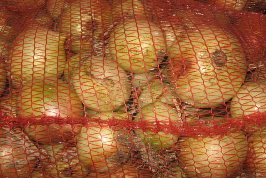 Лучше всего использовать капроновую сетку. Но если первый вариант невозможен, то можно хранить урожай в пластиковой сетке (представлена на фотографии ниже).