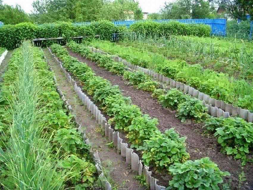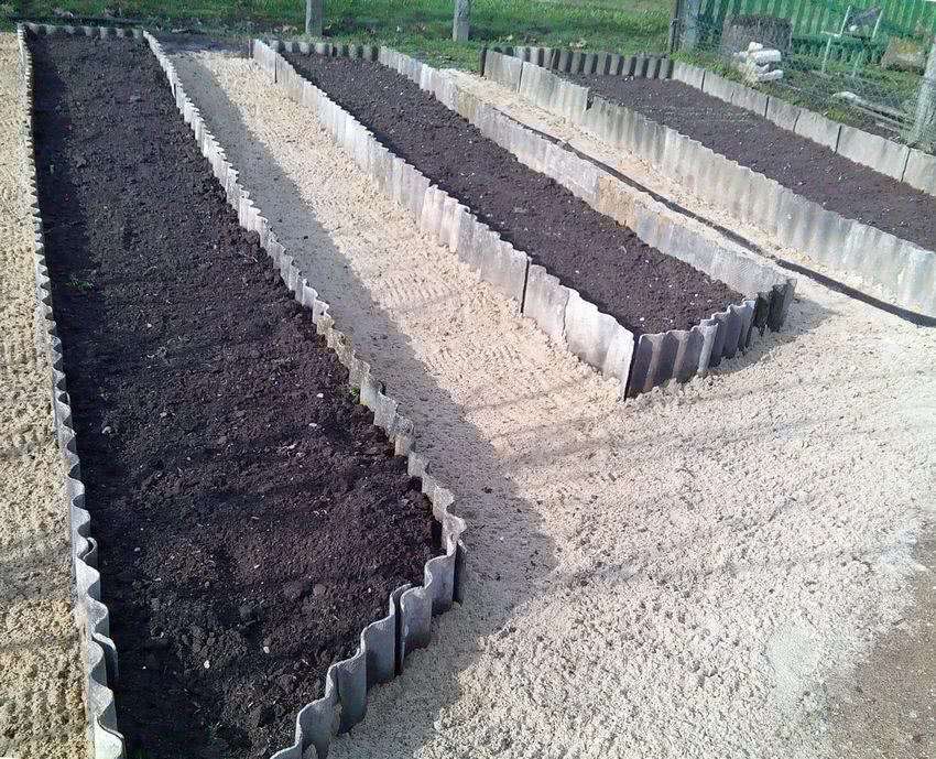 Низкие продольные грядки из шифера. Интересный вариант для дачи.