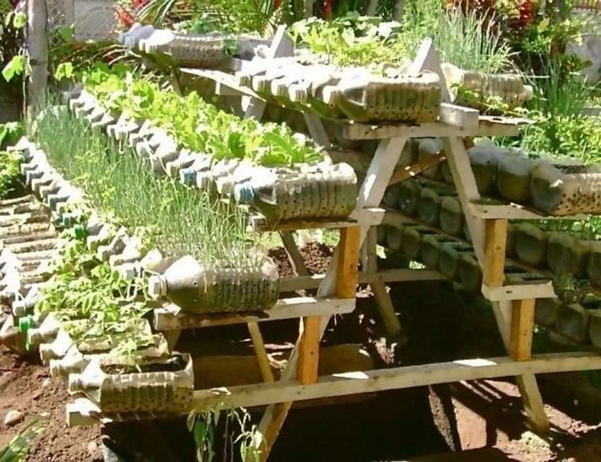 Грядки из пластиковых бутылок своими руками. 10 фото