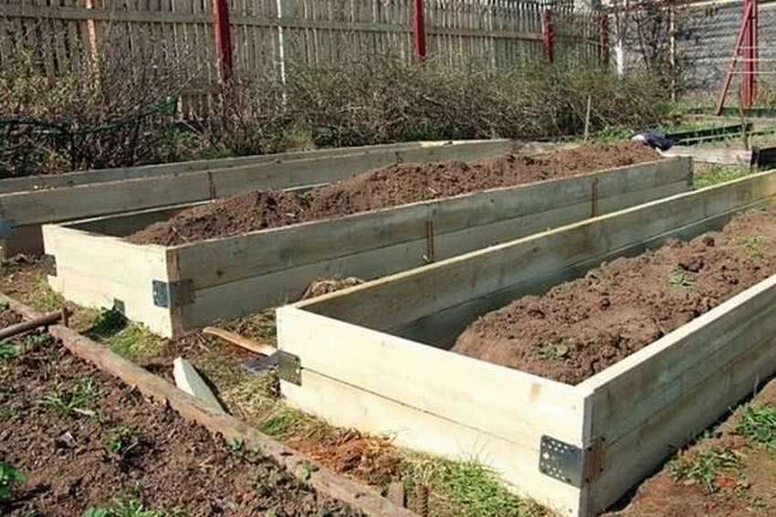 Грунт на грядке из деревянных досок прогревается быстрее и продлевает жизнь растениям.