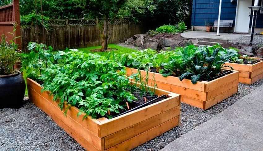 На фото представлены грядки подходящие для частного дома. Такие коробки чаще всего используют под огурцы, клубнику или кабачки.