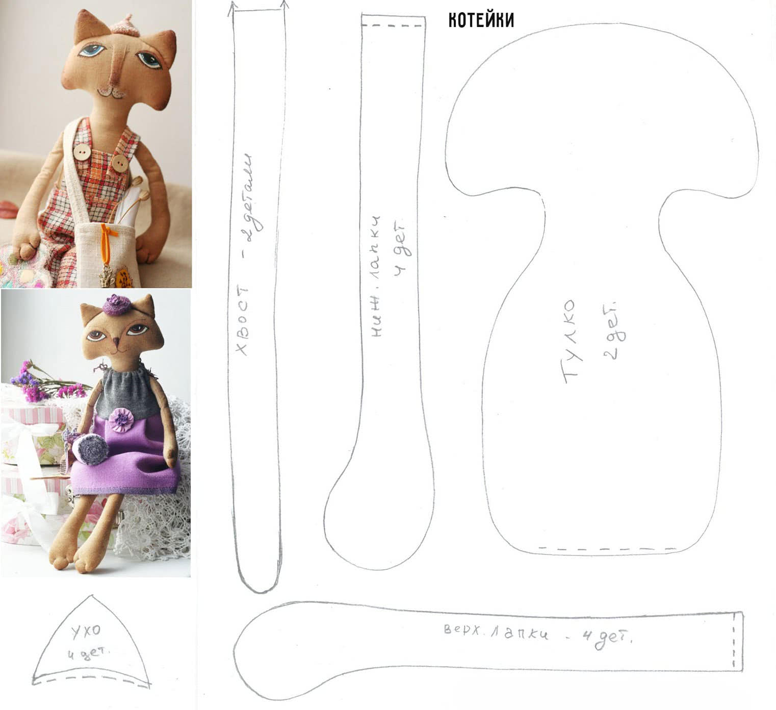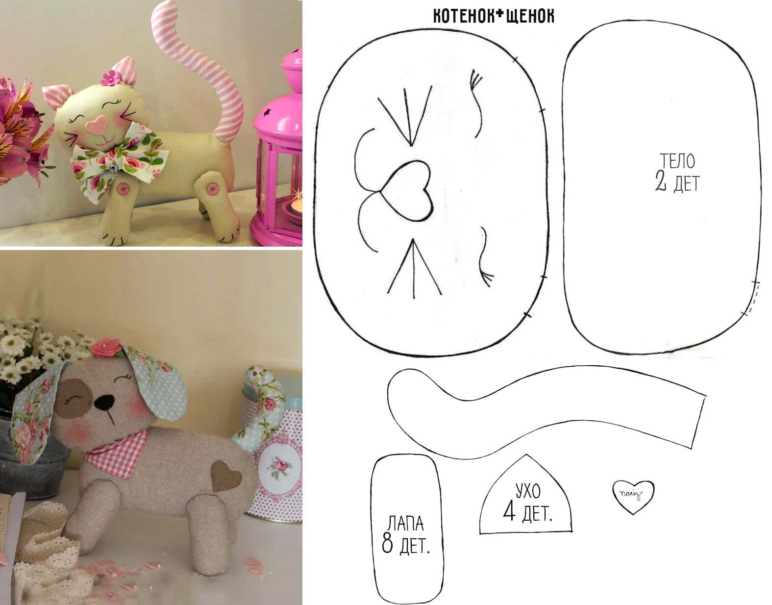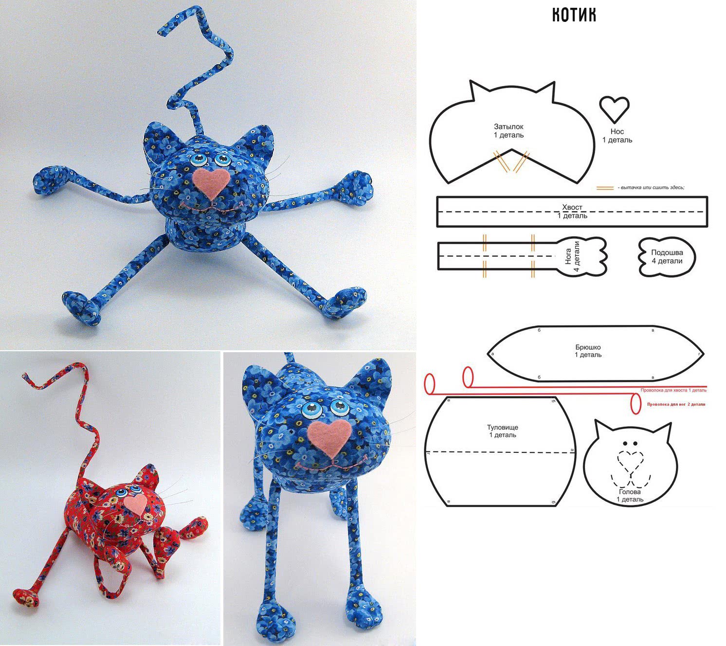 На фото разные выкройки игрушек для начинающих: