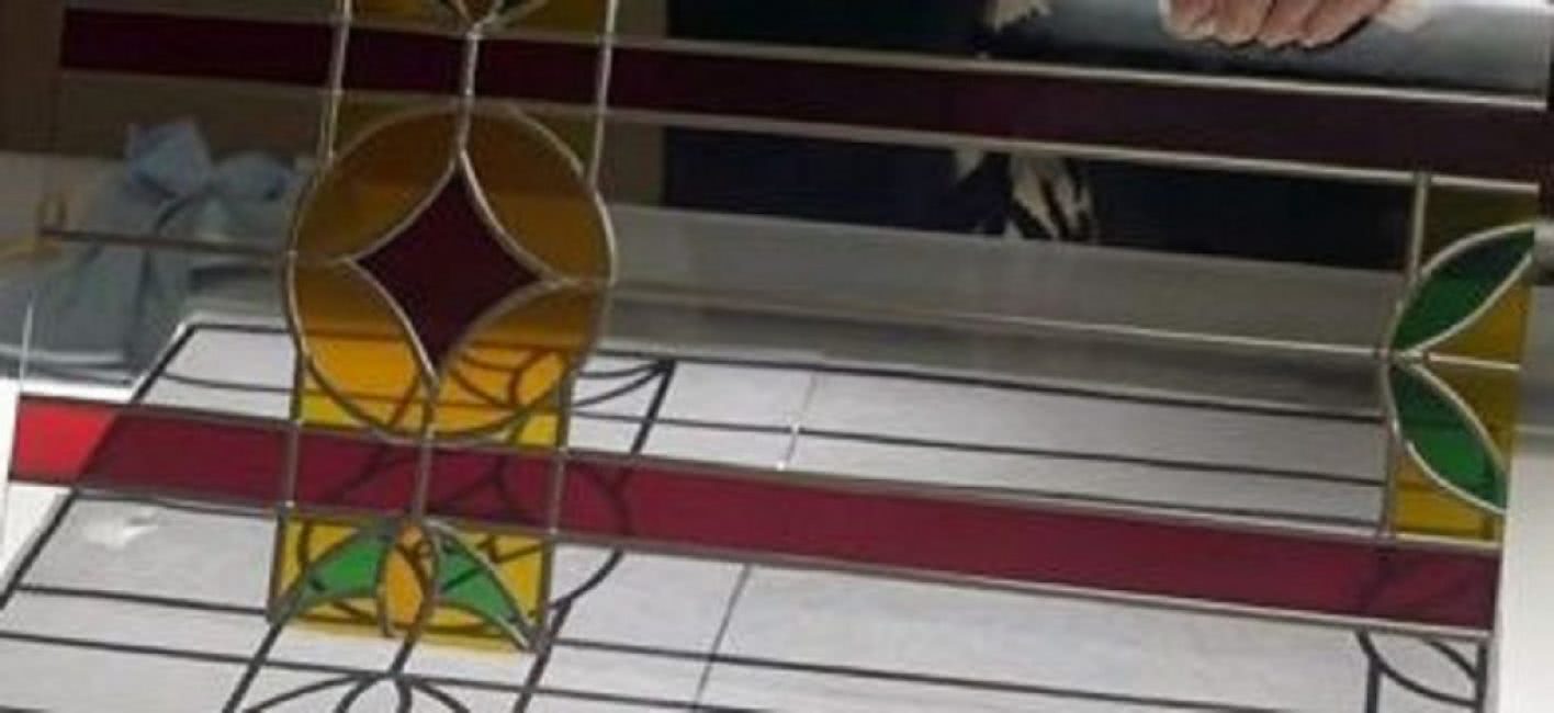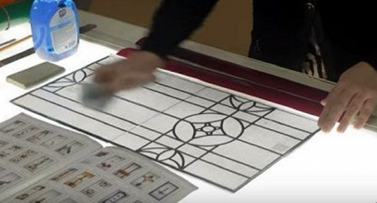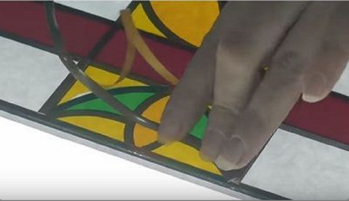 По окончании работы все стыки прижимаются специальным прижимом, поверхность тщательно протирается моющим средством. Витражная картина готова.