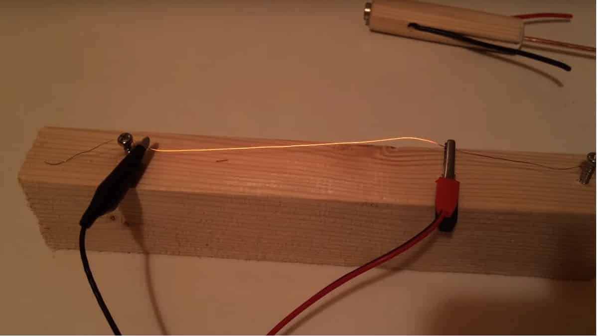 Второй вариант наиболее простой, так как, имея проволоку диаметром, допустим, в 0,5мм, вы можете натянуть ее на кусок сухой древесины и, подключив питание крокодилами наблюдать скорость и величину нагрева по цветовым изменениям.