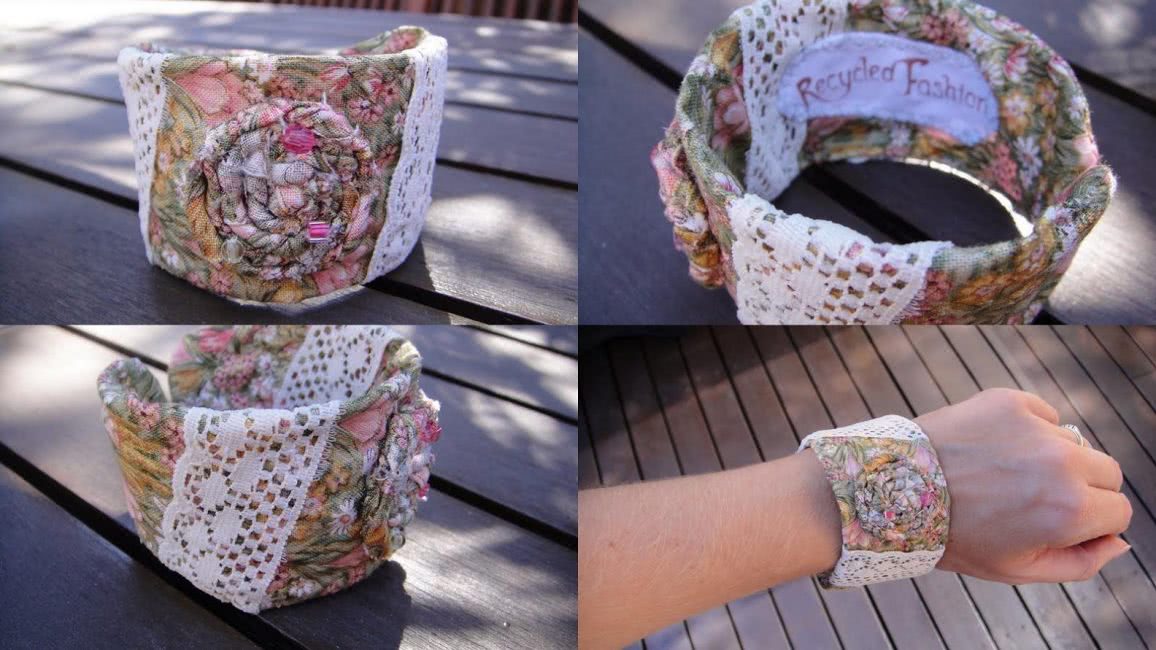 Далее эти круги вырезаются канцелярским ножом, после чего, от ленты можно избавиться. К получившемуся изделию приклеивается двухсторонний скотч (желательно чтобы его ширина совпадала с шириной липкой ленты). Теперь можно начинать вырезать войлок и крепить его на браслет, лишнее отрезается ножницами.