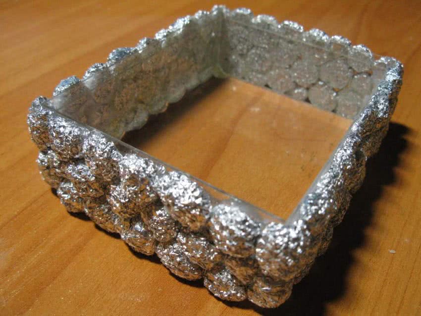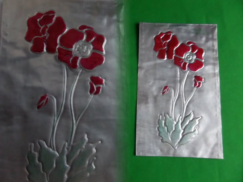 | Листовая фольга | Вырезав необходимый узор, нанесите на его обратную сторону клей и зафиксируйте на пластине |
