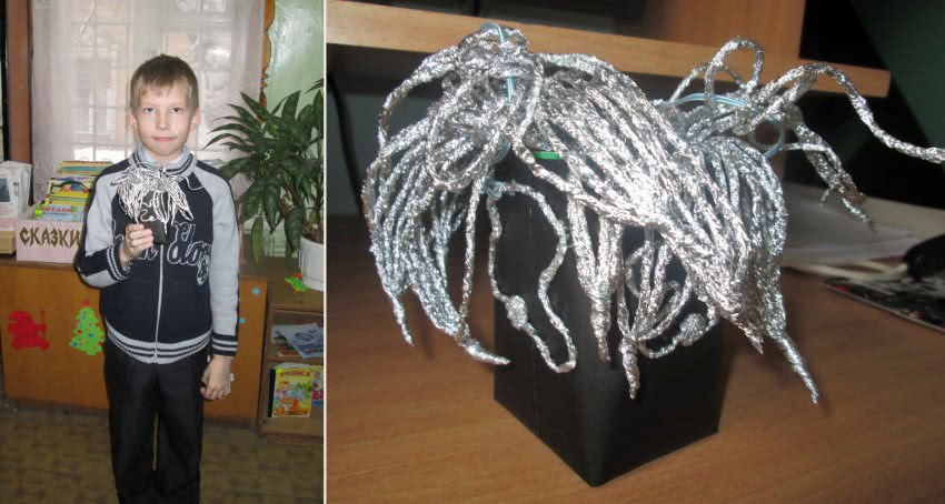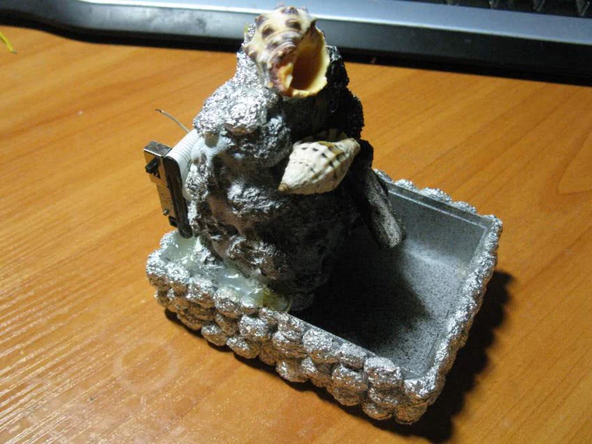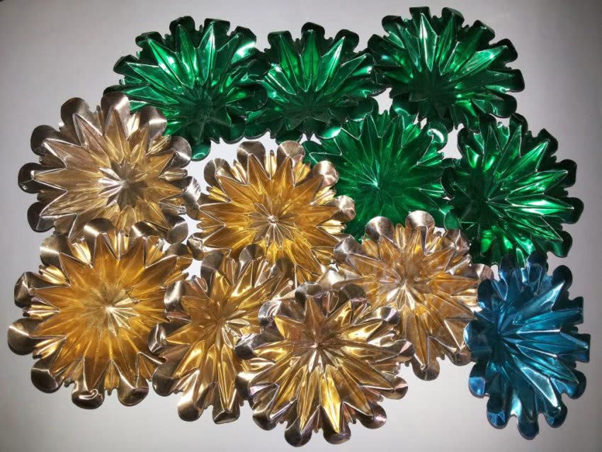 Продаётся жатая фольга в небольших пластиковых баночках в сжатом виде, внешне похожа на сусальное золото. Лучше всего она смотрится в сочетании с аквариумным дизайном.