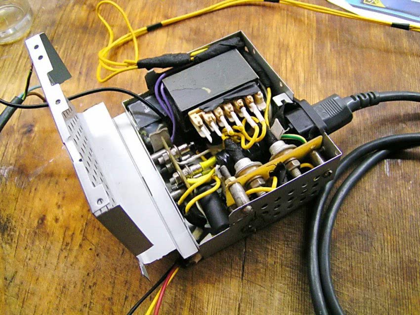 Диодный мост взял с импортного телевизора, хотя во время воспроизведения звука диоды греелись ощутимо. Все остальные детали достал с советского ТВ.