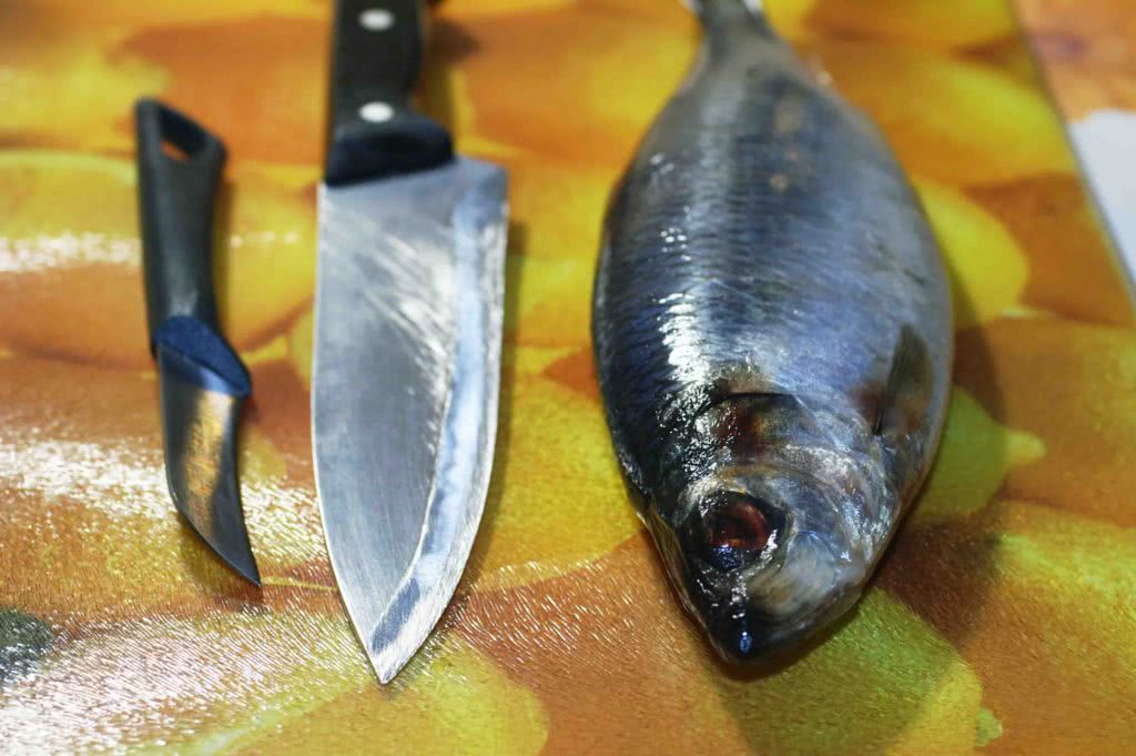 При чистке рыбы необходимо быть внимательным, так как можно пораниться о её зубы или жабры.