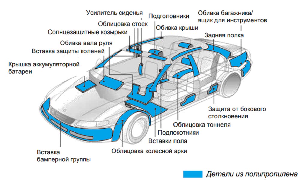 В то время как несколько видов пластика может использоваться в машине, три основных типа составляют 65% всего пластика, используемого в автомобиле: PP — полипропилен (32%), PU/PUR полиуретан (17%) и PVC — поливинилхлорид (16%). Итак, рассмотрим наиболее часто используемые в автомобилях типы пластиков.