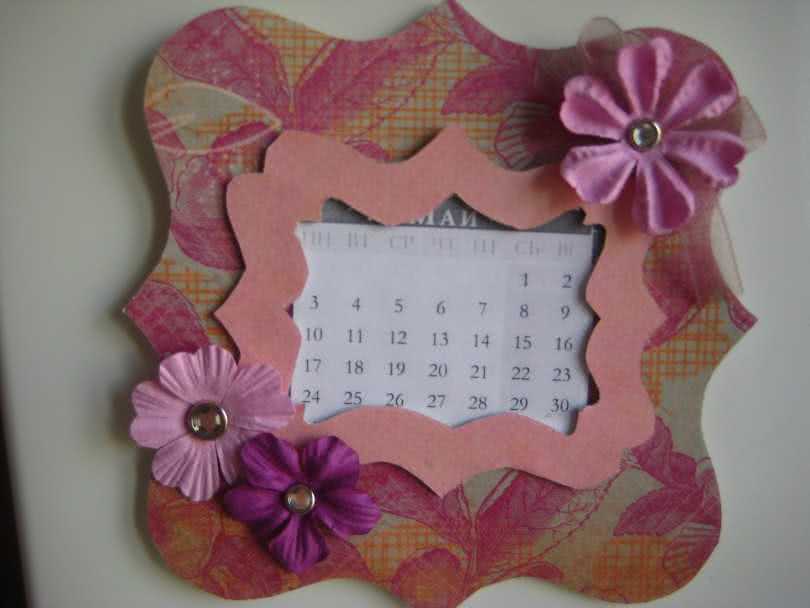 - Вариант 1. Из маленького календарика вырезают каркас для будущей корзинки. На него приклеивают гофрированный картон и раскрашивают акриловой краской. На корзинке создают букет, прикрепляя декорации. С обратной стороны наклеивают фоамиран, на него – магнитный винил.