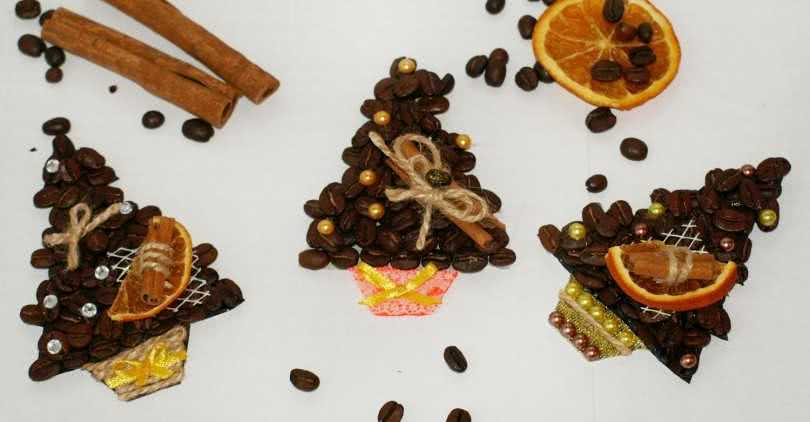 Здесь есть поле для фантазии — можно выбрать шаблон из интернета или создать его самостоятельно, обклеивая сверху кофейными зёрнами, корицей, бубликами и другими аппетитными вещами.