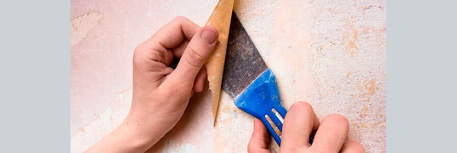 Чтобы обои легче снимались, их необходимо смочить водой и подождать минут 10. Обои с виниловым покрытием слегка подрезаем, чтобы влага попала в нижний слой. Смочить обои можно просто опрыскивателем. Далее удаляем их металлическим шпателем.
