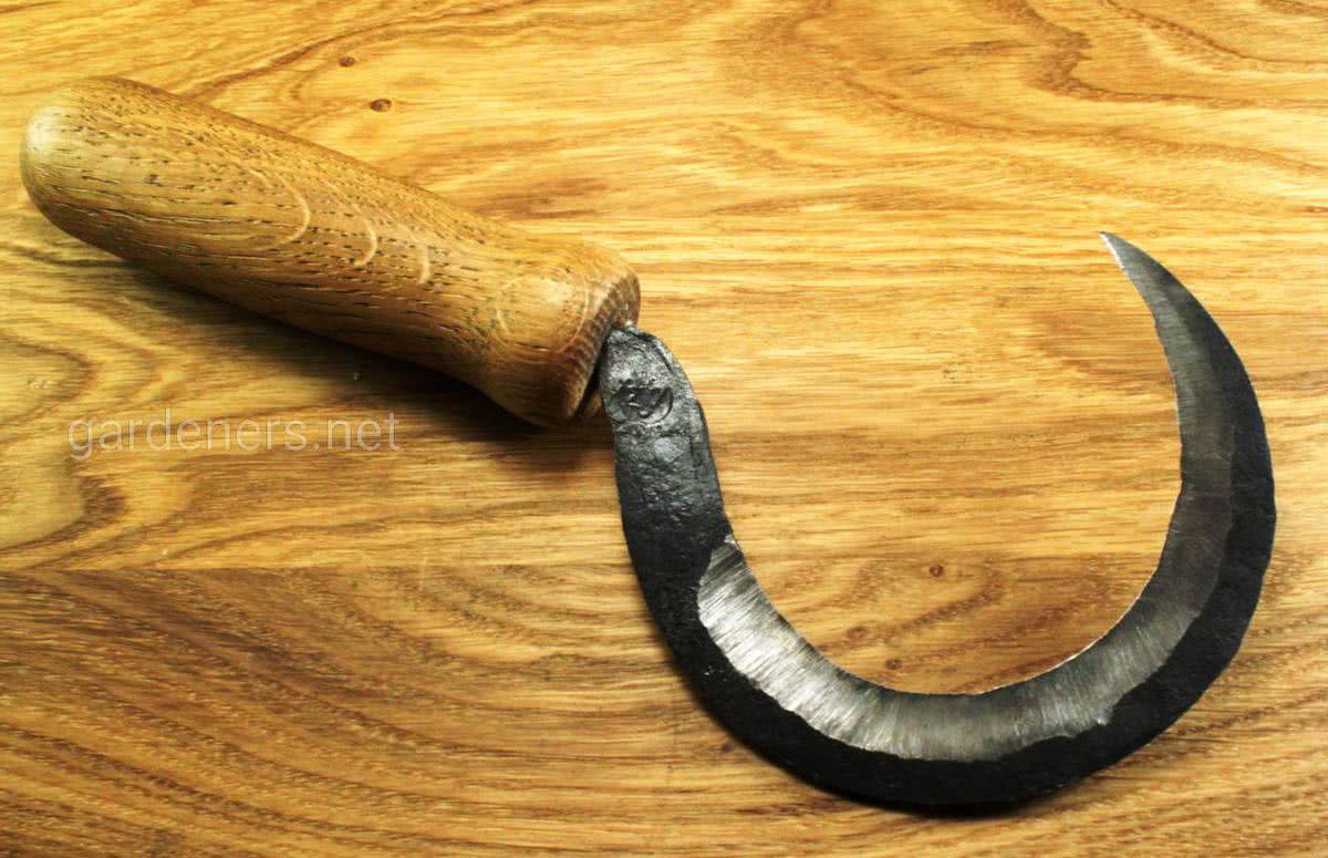 Это очень популярное и простое по конструкции, земледельческое орудие, применяемое при производстве работ на приусадебном участке. В зависимости от опытности человека, правильности подобранного инструмента, его качества и производительности, за 30 минут непрерывной работы можно убрать заросли на площади более 50 квадратных метров. Закругленным острым лезвием сначала подгребают небольшой, зажатый ладонью, пучок травы, и резким движением срезают под самый корень. Травяные стебли после срезки не разлетаются по участку, а остаются зажатыми в ладони, что очень удобно, к примеру, при заготовке корма для домашних питомцев. Наверное, минусом в работе с серпом, является полусогнутая поза, хотя владелец сам выбирает, как лучше и эффективнее приспособится к работе. То ли в полусогнутом положении, то ли на корточках – усилия для срезки травы прилагать все-таки нужно.