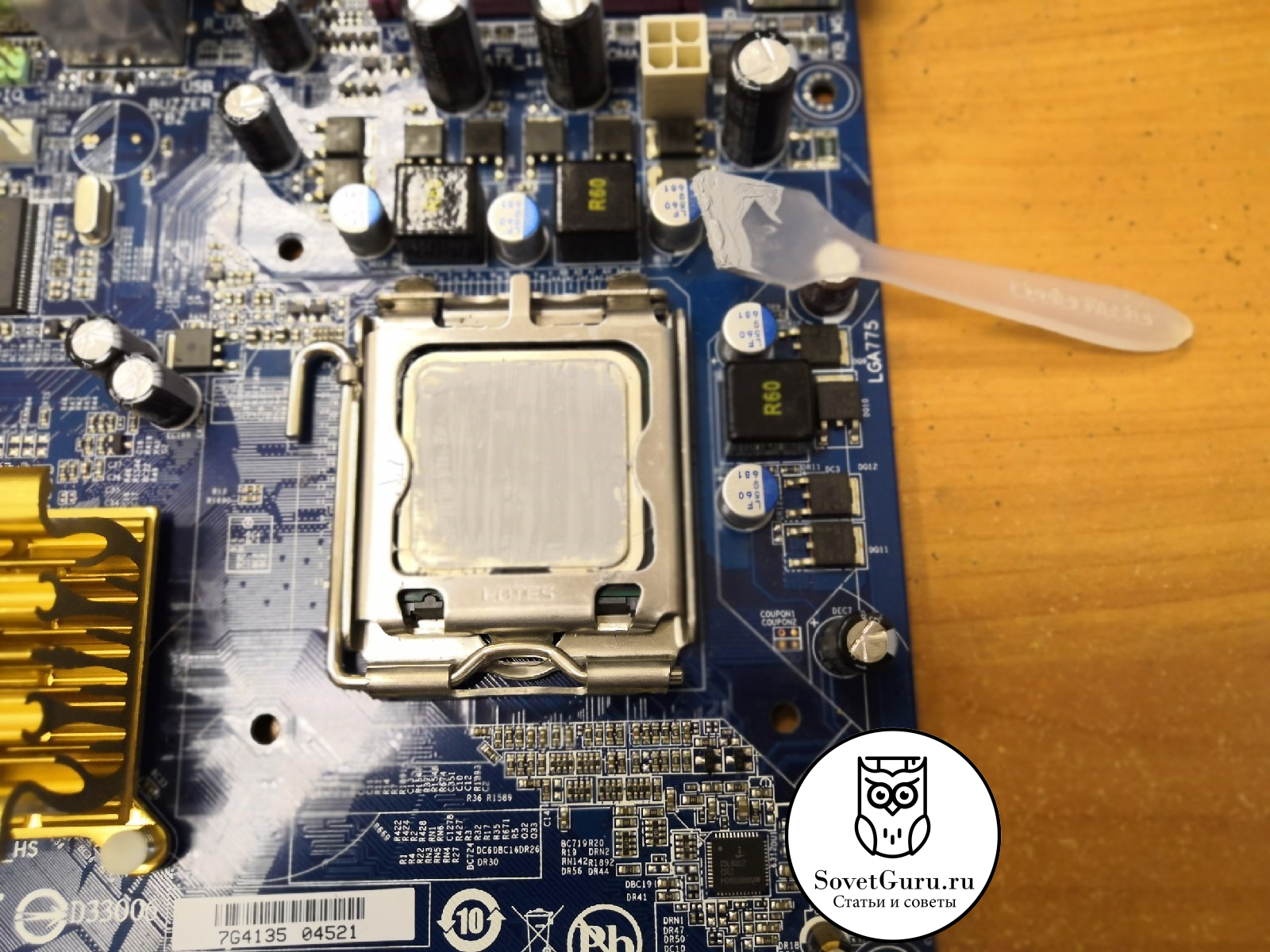- После нанесения слоя сквозь него должен слегка просвечиваться процессор;