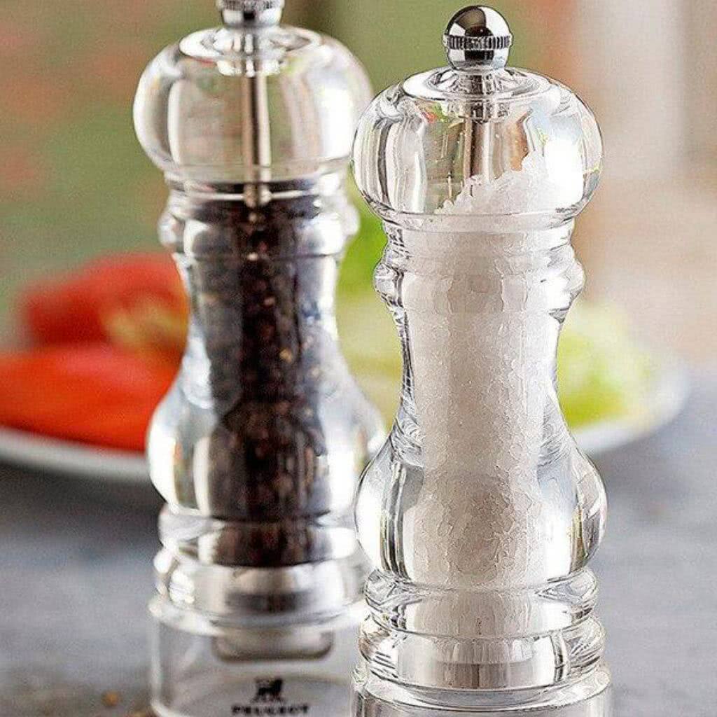 Это прозрачные колбы из стекла или пластика, уже заполненные одной приправой или готовой смесью специй. Чтобы посолить или поперчить готовое блюдо, достаточно просто покрутить крышку над тарелкой.
