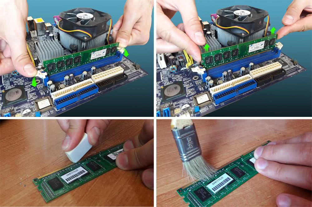 Испытайте планки на системе по отдельности (втыкайте их по очереди), если их несколько. Если ничего не помогло – попробуйте протереть спиртом.