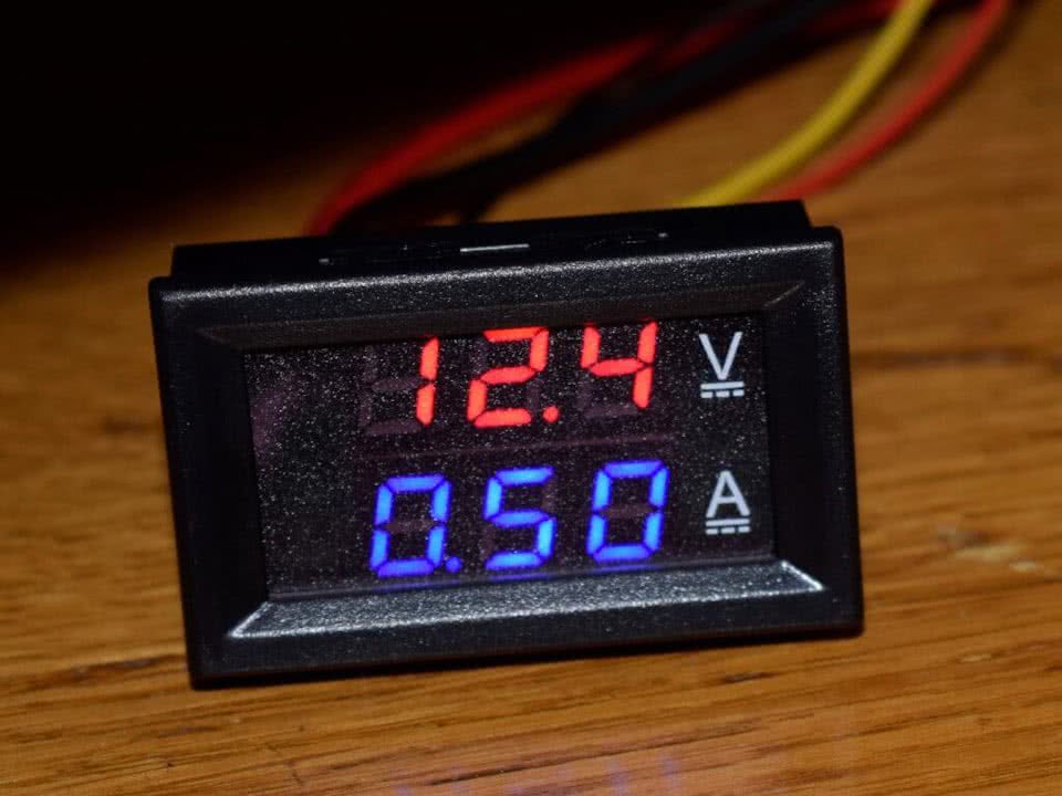 Если говорить про параметры вольтметра–амперметра, то важно отметить, что рабочее напряжение находится на уровне 12 В. Потребление тока в данном случае равняется 0.5 А