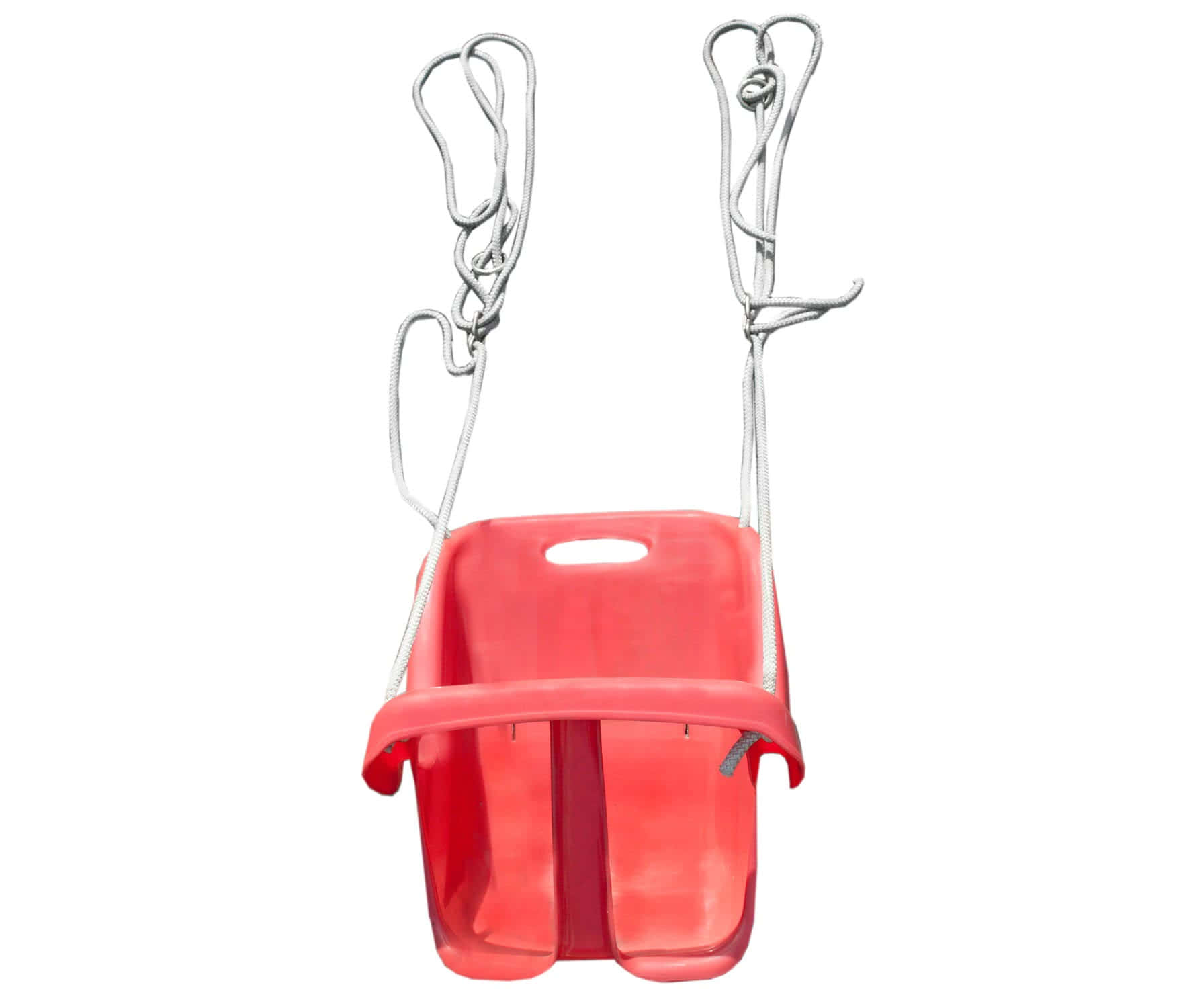 Самыми ненадежными считаются пластиковые качели. Такой материал очень легко испортить или сломать, он подойдет только для маленьких детей с небольшим весом. Кроме того, пластмасса — абсолютно ненатуральный материал, который может оказывать вредное воздействие. Но по сравнению с железными моделями пластмассовые качели более легкие, безопасные и теплые. Такое изделие будет полностью безопасным, если добавить в его конструкцию защитные текстильные чехлы.