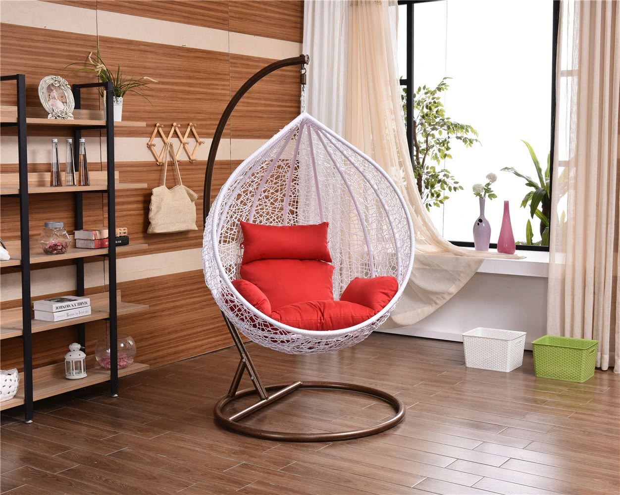 - Подвесной стульчик — идеальное дополнение для спальни, детской (для подростка) или гостиной. Можно использовать конструкцию на балконе. Яркая модель идеально дополнит современный интерьер.